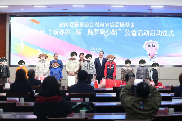 2月4日,湖南农信温暖基金2026年度“新春第一暖 圆梦微心愿”公益活动在省农信联社正式启动。本次活动由省农信联社与省慈善总会共同主办,省慈善总会副会长邓洪波,省农信联社党委委员、副主任徐达华,省农信联社党委委员、纪委书记,驻社纪检监察组组长谢扶民出席。