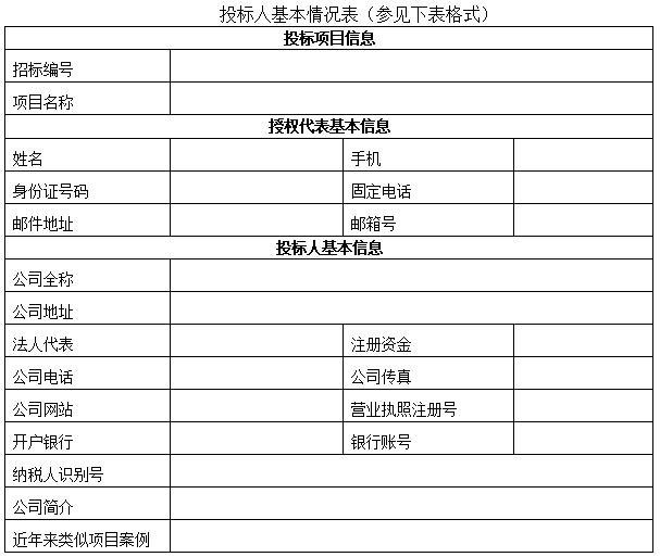 备注:外地或者本地不能来现场报名的投标人可以将“投标人基本情况表”完善后,连同“单位介绍信”、“标书款转账底单”一起扫描发送至hnglzb@163.com,招标代理机构将及时办理报名登记。