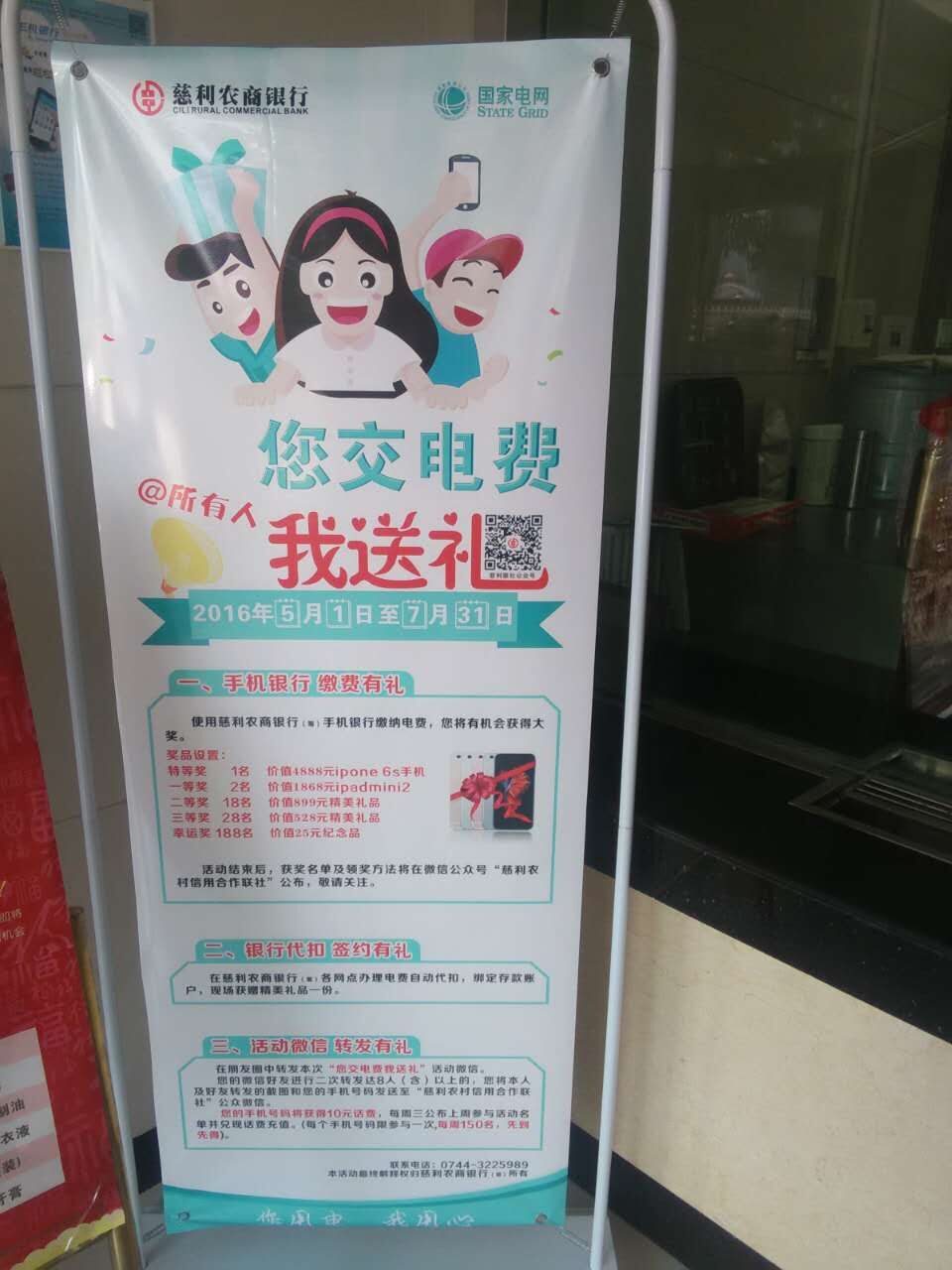 三部曲“开展活动推波助澜”。从5月份开始,与县电力公司联合开展为期三个月的“您交电费我送礼”活动,包括“手机银行缴费有礼”、“银行代扣签约有礼”、“活动微信转发有礼”三项内容,提高客户的对电费代缴业务的关注度和参与度。
