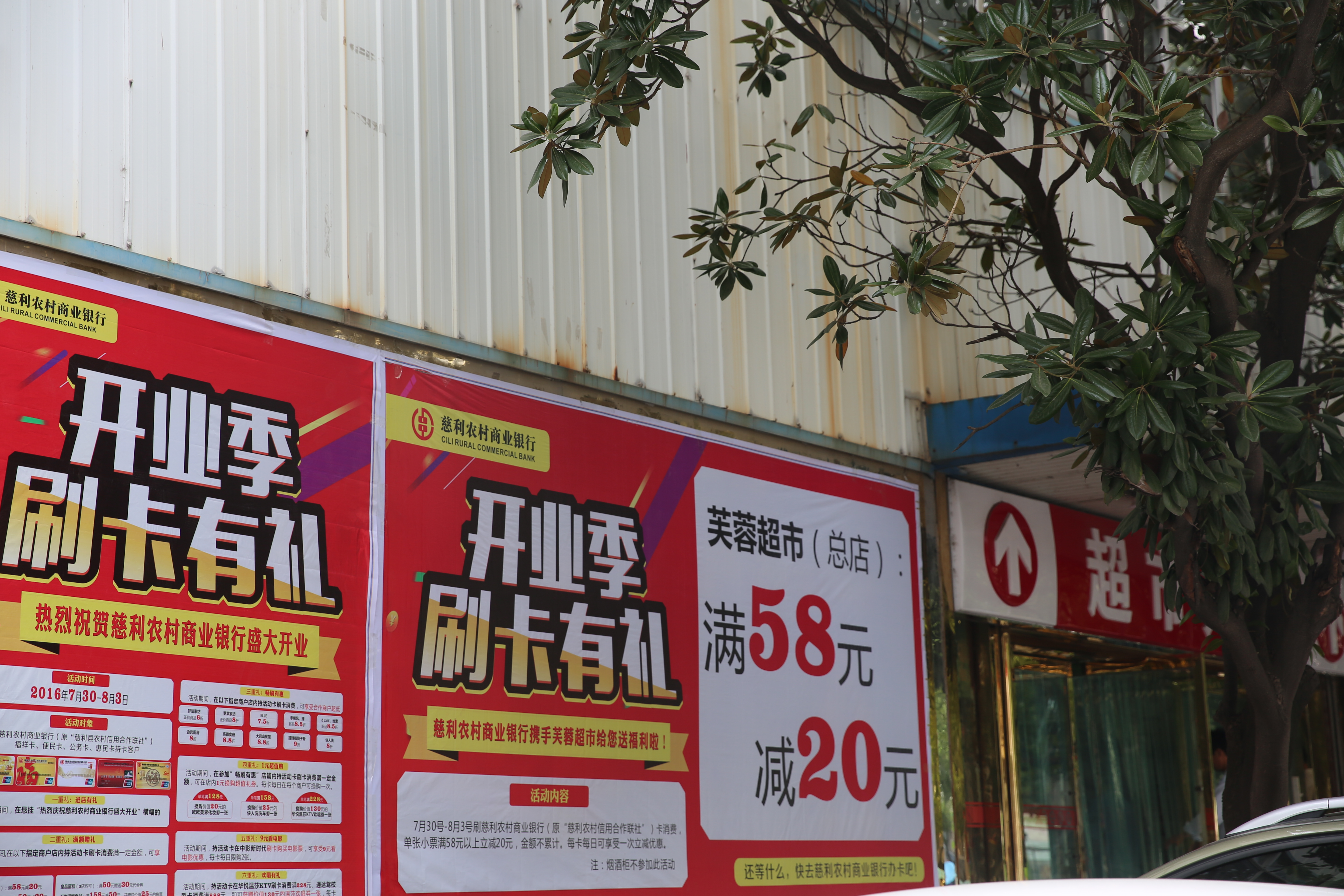 为答谢广大客户,提升农商银行知名度, 7月30日-8月3日,慈利农商银行借助开业之际,联合县城68家商户开展了“开业季刷卡有礼”活动。为客户送上了四重大礼。一是进店有礼,在所有挂有“热烈庆祝慈利农村商业银行盛大开业”横幅的店内刷福祥卡消费,均可免费获赠精美礼品一份;二是满额赠礼,在合作商户店内持福祥卡刷卡消费享受减免优惠、折扣优惠或1元换购超值礼劵;三是公交“闪付”1折惠,持福祥卡乘公交 “闪付”,可享受1折乘车优惠。四是与中影合作,推出9元观影活动。
