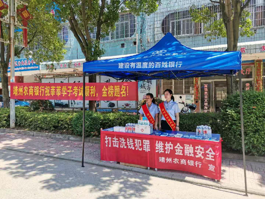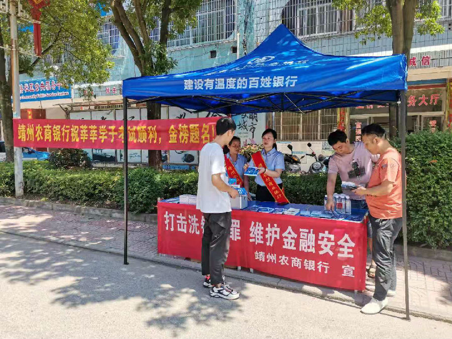 在临时休息等候区,志愿者们主动与考生家长进行沟通交流,耐心解答了他们所关心的孩子上大学后的学费划扣、生活费转账等方面问题,一方面缓解他们紧张情绪,另一方面适时向他们推荐靖州农商银行手机银行、福祥便民卡、定期存款等产品。在现场,工作人员还通过发放宣传资料、现场答疑等形式,向到场老师及家长讲解“非法网贷、校园贷、洗钱”等违法活动的特点以及危害,提醒大家远离非法网贷、校园贷、洗钱,自觉树立正确的消费观。