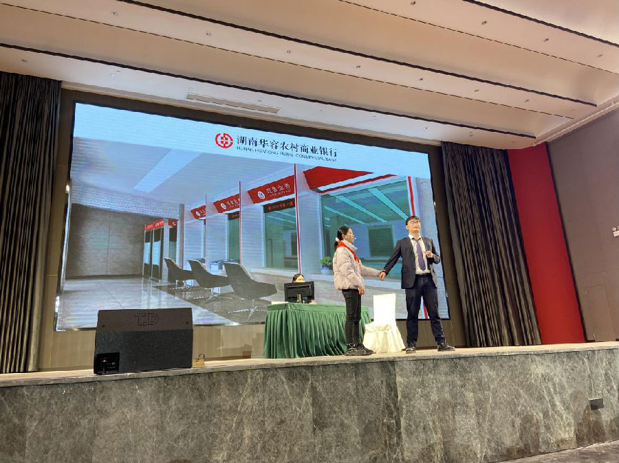 小品《温度》根据我行真实工作场景改编,展现了农商银行员工坚持规章办事的原则性,更体现了农信人热诚服务、特事特办的行动力。小品结尾处,“农信人要做服务为民的孺子牛、艰苦奋斗的老黄牛、改革创新的拓荒牛,以三牛精神引领人生态度,为农信事业的发展披波斩浪,共建有温度的百姓银行”的宣誓最终引来了全场雷鸣般的掌声!