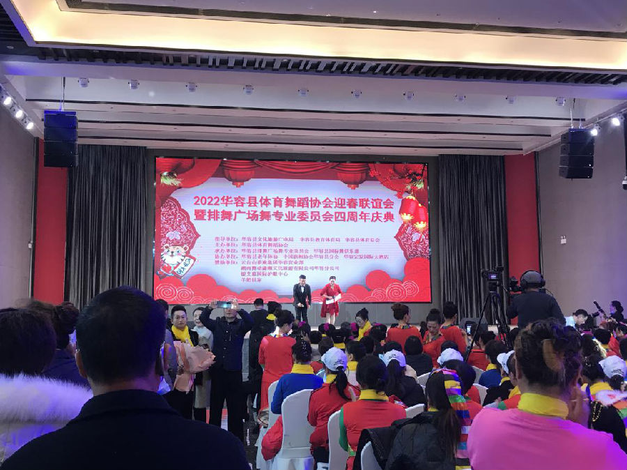 1月13日下午,由华容县文化旅游广电局、华容县教育体育局指导,华容体育舞蹈协会主办的2022华容县迎春联谊会在宏发国际大酒店富贵厅隆重举行。