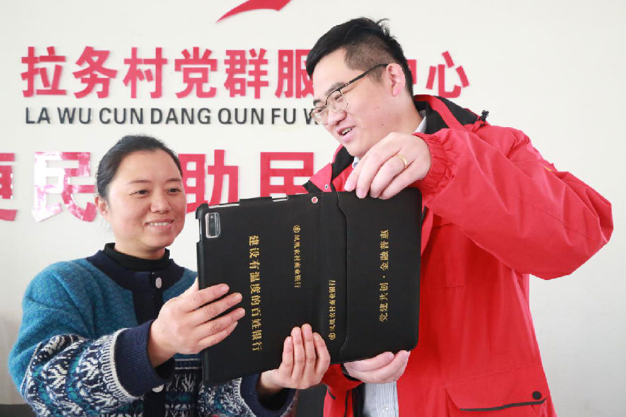 该行客户经理使用移动营销PAD为村民办理福祥“e”贷
