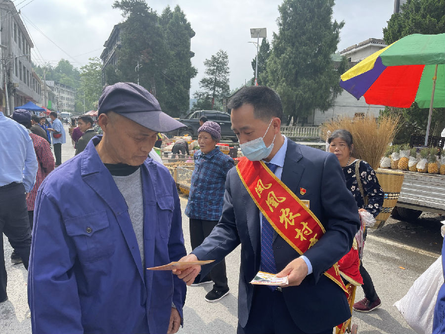 部门联动,宣传普及进苗乡。凤凰农村商业银行联合凤凰县公安局经侦大队、山江派出所等部门,利用凤凰县苗族聚集地山江镇赶集日之际,到山江镇举行“‘5.15’与民同心,为您守护”打击和防范经济犯罪宣传日活动。通过在人员聚集处现场金融知识宣讲、发放宣传资料、布置宣传展板、悬挂标语横幅等形式,向群众展示当前与生活密切相关的涉众型经济犯罪活动规律、特点、表现形式、社会危害及湖南省八大打击涉众型经济犯罪典型案例。提醒群众特别是老年群众要警惕以打着“亲情”“关爱”为名免费体验、免费体检开展的“健康讲座”“专家义诊”,以及以“低价旅游”“赠送实物”进行促销的商业活动,谨防不法分子非法吸收资金,守护好自己的“养老钱”“保命钱”。