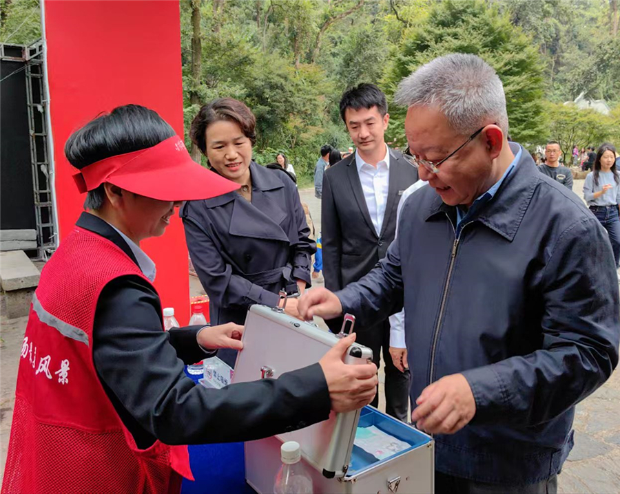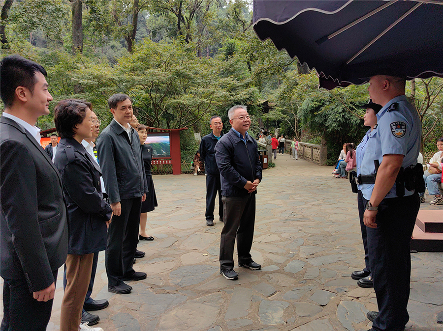 沈晓明在岳麓山景区了解国庆假期应急救援、游客服务等情况。