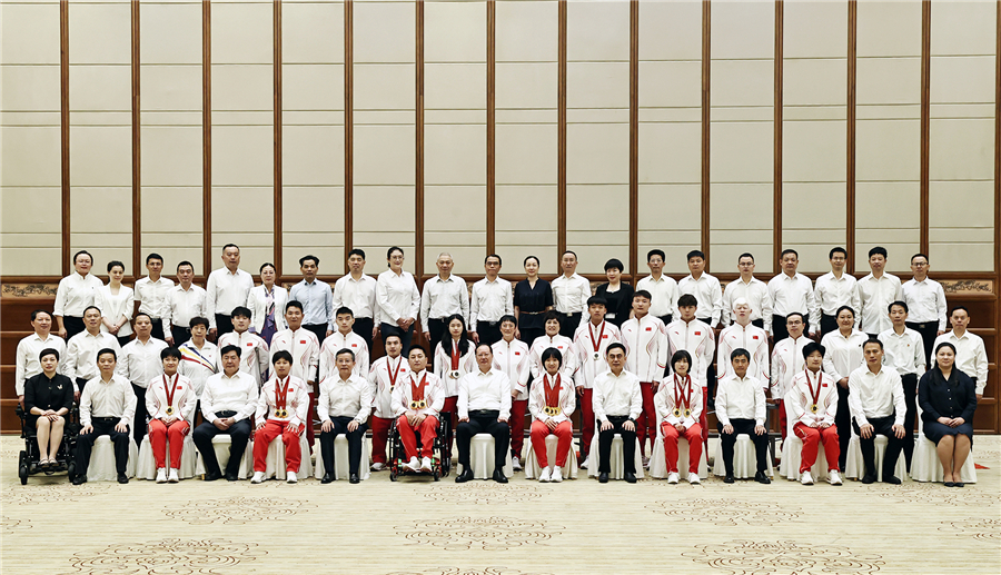 10月10日上午,毛伟明会见残奥会运动员、教练员代表。