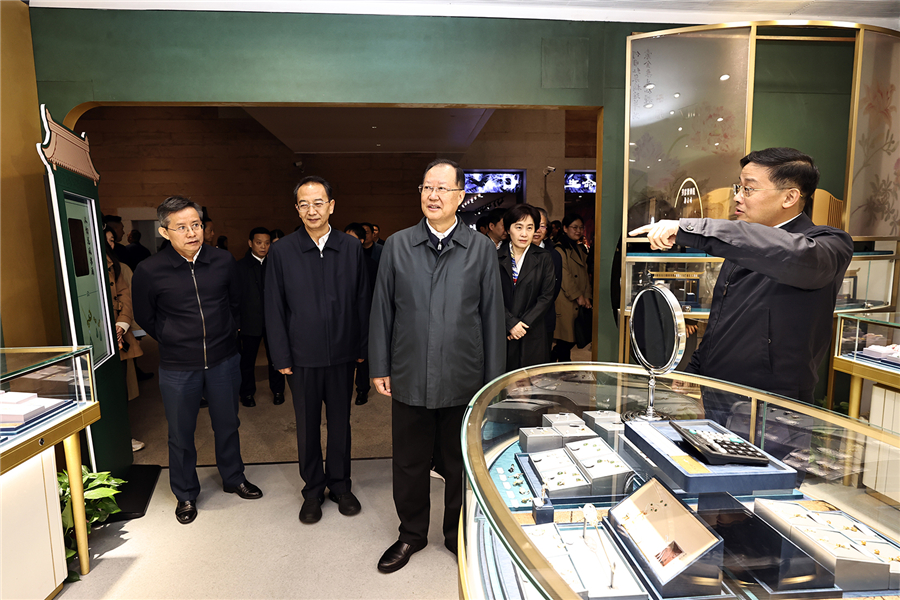 走进湖南博物院,毛伟明一行参观了“生命艺术—马王堆汉代文化沉浸式数字大展”、“志说湖南—大型史志文物联展”,并来到文创商店,详细了解文创产品设计及销售等情况。他说,当前,“博物馆热”持续升温,这里正日益成为群众收获知识的新殿堂、娱乐休闲的新空间和时尚社交的打卡点。要充分挖掘馆藏资源、生动运用数智技术,将传统元素与现代审美相结合,积极打造可视化、互动化、沉浸式的藏品展示新场景,积极创造兼具文化属性、使用属性、社交属性和趣味性的文创产品,更好满足群众的高品质文化消费需求。