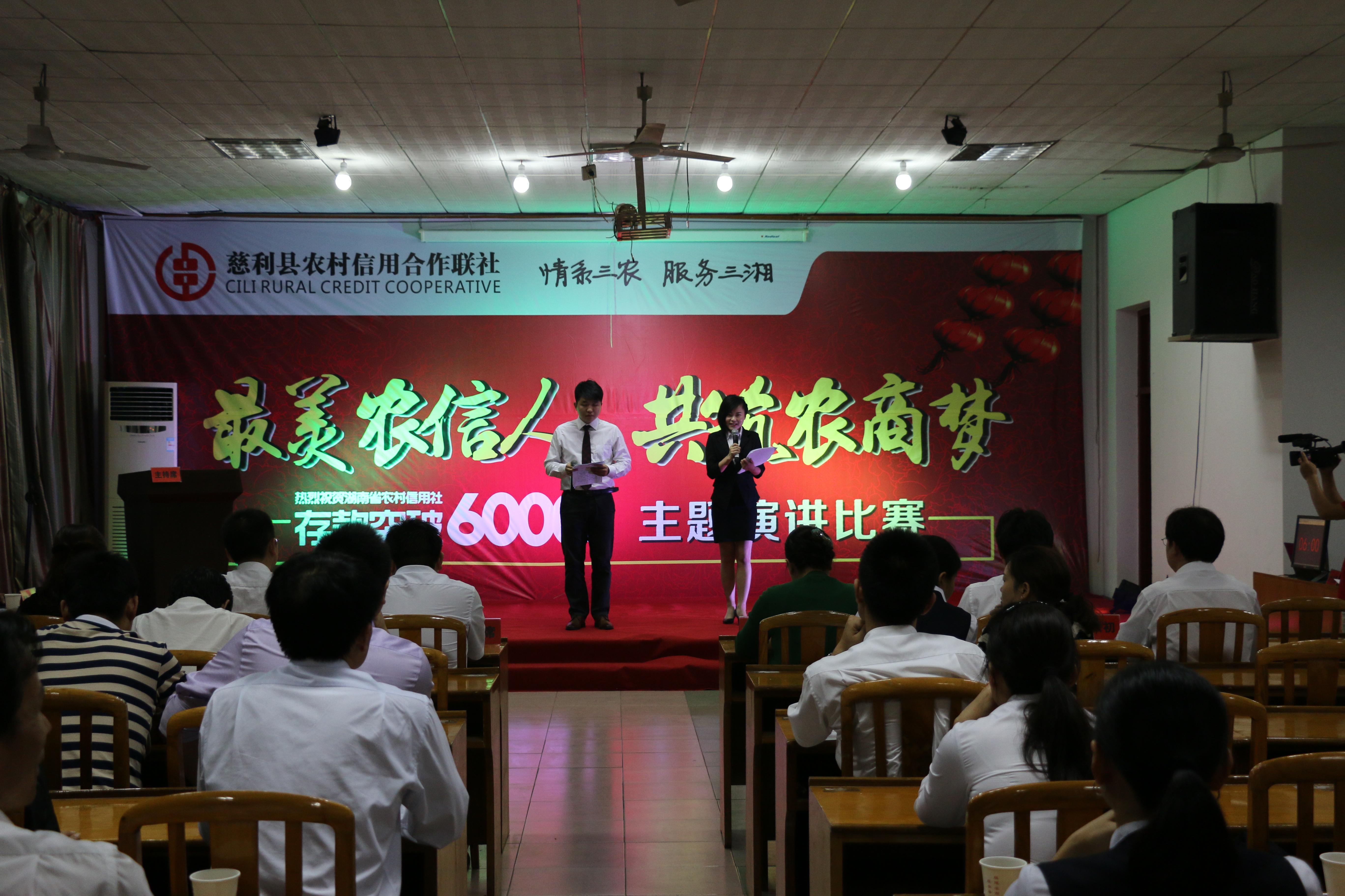 9月25日晚,慈利联社举办“最美农信人 共筑农商梦”之热烈祝贺湖南省农村信用社存款突破6000亿元主题演讲比赛,来自全县农村信用社的18位选手经过2个小时的激烈角逐,最终《坚持的力量》、《心中的英雄》等6个节目脱颖而出,获得嘉奖。